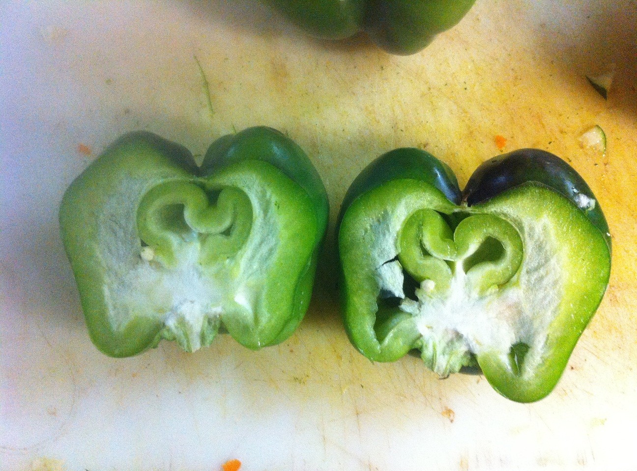 3.Corey, Annahis and I were having lunch together. I brought one lettuce as my salad and one green pepper to add a little bit variety for the salad..