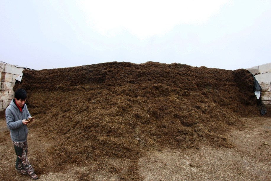 Dried alfalfa for the food of the cows. The dried alfalfa doesn’t look fancy but smells really good. And they were also grown on the farm.