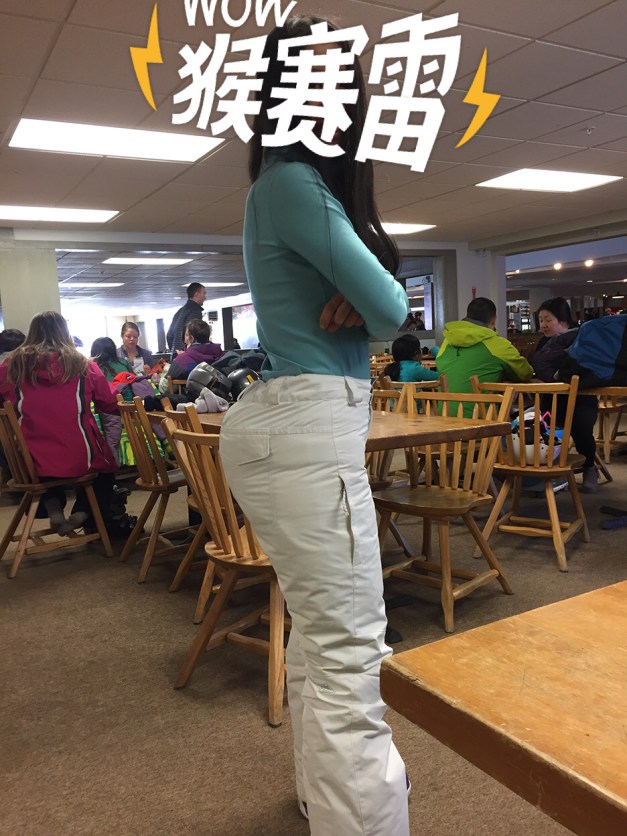 One friend placed lots of butt cushion protectors in her pants and got ready for snowboarding…