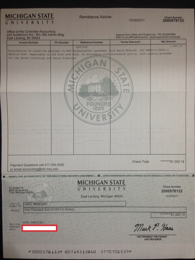 My second compensation of patent royalty fee. Good enough to pay a lot of parking tickets!!
