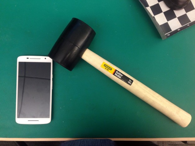 Sameera was testing a phone app. For some reason I saw a hammer on her desk and got totally amazed by how she tested the phone app…