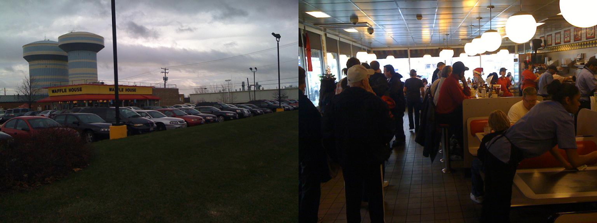 The most packed Waffle House ever and probably the only restaurant open on Christmas Day. -Columbus OH, Dec 2009