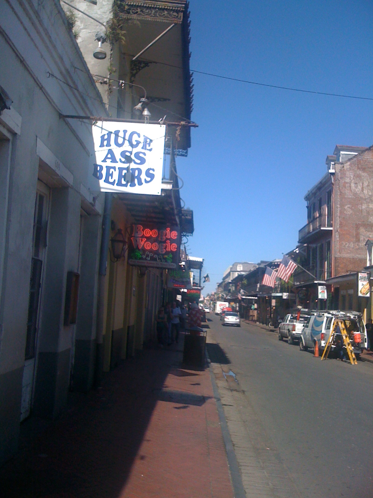 John and I walked on bourbon street and took a glass of “Big Ass Beer” until we saw this “Huge Ass Beer” even though what I really need was a “Giant Ass Beer”. -New Olearns LO, Oct 2010